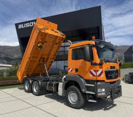 Нов внос от Германия в отлично състояние ✅ Гарантиран пробег 26000кг. общо тегло - 14050кг. полезен товар 6х4 тристранен самосвал моторна спирачка авт...